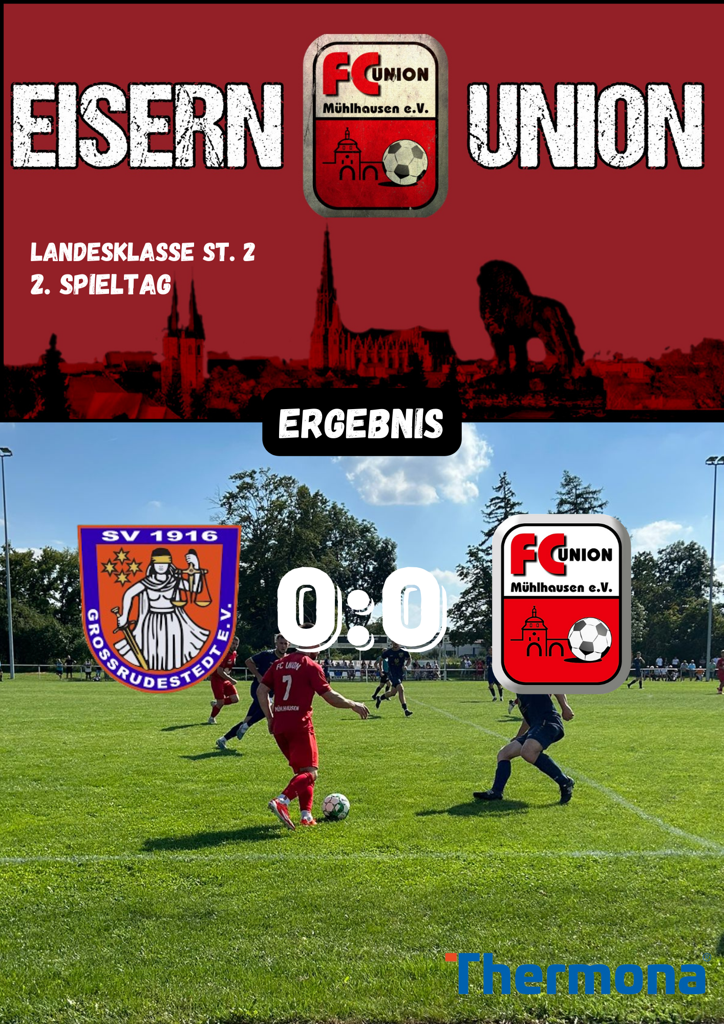 Den FC Union Mühlhausen erwartete beim Aufsteiger SV 1916 Großruderstedt eine zähe Partie bei hochsommerlichen Temperaturen. Nach torloser erster Halbzeit hieß es am Ende ebenfalls 0:0. Es war wie beim letzten Duell an gleicher Stelle, das der favorisierte FC Union nicht über ein Remis hinaus kam. Man konnte den Spielverlauf so erwarten. Nach der 0:4- Klatsche in Kölleda agierte der Neuling sehr defensiv, verteidigte bis auf einen Stürmer mit zehn Leuten rund um den eigenen Strafraum. Entsprechend der Ballbesitz der Unioner, die vor der Pause durch Christoph Stein, Jerome Petereit und Jannis Zimmermann nach Eckball fünf, sechs sehr gute Chancen herausarbeitete, aber noch keine nutzen konnte. Auch in Hälfte zwei Einbahnstrassen- Fußball in Richtung Gastgeber Strafraum. Wenn etwas durchkam, hatten siie Platzhewrren einen souveränen Torwart zwischen den Stangen. Der machte in der 87. Minute Unions beste Chance durch Tom Fränkel zunichte, so blieb es für die aufopferungsvoll verteidigten Großruderstedter beim ersten Punktgewinn. „Man muss den Gastgebern für ihren defensiven Einsatz ein Kompliment aussprechen. Wir konnten aus unserer Chancenüberlegenheit heute kein Kapital schlagen“, gratulierte Unions Andreas Petereit den Platzherren fair zum errungenen Zähler.